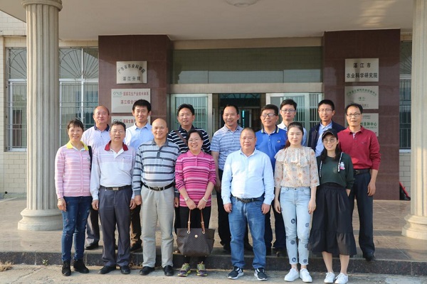 2018年4月10日下午,佛山分院梁镜才副院长带队,联合佛山市农科所等一行12人到访湛江分院,湛江分院副院长陈火兴(湛江市农科院院长)、办公室主任邓铭光研究员和驻点科技人员李武副研究员、傅友强博士、孙敏华博士热情接待梁镜才副院长一行。随后,在市农科院会议室举行了会谈,市农科院黄胜副院长,湛江市农业技术推广中心主任陈敏忠、市果树蔬菜研究所副所长周文等一起参加了交流。首先,各方单位相互介绍了本单位的基本情况,并就地方农科所的未来发展方向和前景进行了深入的交流与讨论,分析了目前农业在地方财政贡献中的占比和所面临的技术短缺等严重挑战,对如何借助省农科院的科技力量,包括新品种,新技术和新模式等提升地方农科所的社会地位和社会认同感进行了热情洋溢的探讨。湛江市农科院和佛山市农科所都表示,双方今后在科技服务,人才培养等相互合作与互访交流等方面可以进一步合作与交流。