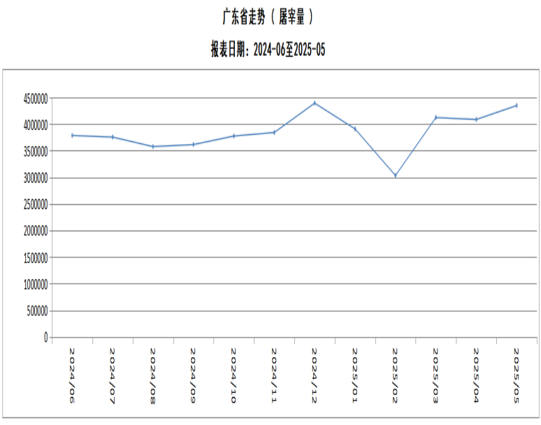 据对全省303家在产生猪定点屠宰企业跟踪监测,5月份共屠宰生猪4348297头,环比上升6.41%。